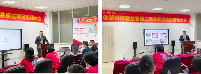 會上,項目老師結合佛塑科技及旗下各公司前期開展項目的情況和易事達公司的實際情況,闡述了項目計劃,并對各階段行動任務和目標做了詳細說明。