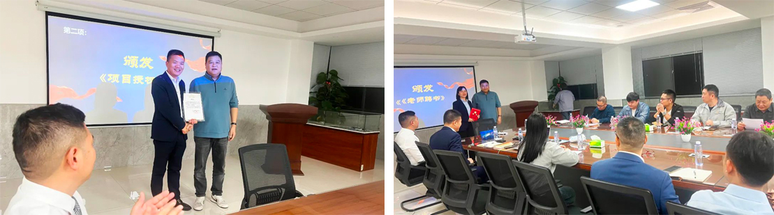會上,陳總為遠大方略項目組頒發授權書,授予項目管理權,同時為項目組老師頒發聘書,聘請老師為此次改善項目輔導老師,全力推進此次項目開展。