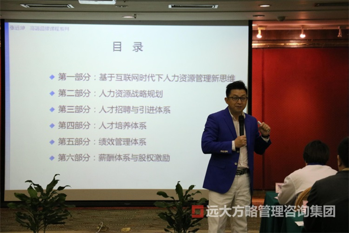 此次課程,我們很榮幸地邀請到了我們遠大方略人力資源模塊的合伙人張遠坤老師,張老師是智慧組織力、雙因子模式倡導者、人力資源管理實戰培訓顧問,其幽默的講課風格一度讓在座的“同學們”拍手稱絕。主持人由我們遠大方略的咨詢師劉建斌老師擔任。