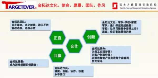 深圳市金拓達科技有限公司,成立于2005年,公司擁有自主研發設計團隊,現有設計師及多名工程師,專注于游戲外設產品(用于SONY、PlayStation、微軟Xbox、任天堂Wii系列游戲主機及Android/IOS平臺設備)的設計研發,并取得多項外觀和實用新型專利。公司經過近12年的穩健發展,取得了一定的業績,但也遇到了轉型階段發展的瓶頸,遠大方略公司與深圳金拓達公司攜手走到了一起,遠大方略項目組老師通過兩周的調研,發現目前公司存在以下主要問題:試產問題多,直通率低、異常頻繁發生;瓶頸問題沒有及時解決,管理干部沒有時間做管理+經營;管理“一直停留在做了”沒有PDCA持續改善和數據管理。