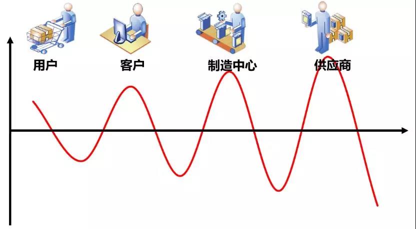 如下圖所示,用戶需求隨著環節增加,出現的偏差越大,為滿足用戶需求,各環節需提前預備庫存,應對不確定風險。從根本上講,庫存的問題是供應的不及時性,或者說,產品需要時間來制造、運輸和配送。比如我們每天都用自來水,水龍頭一打開,水就來了,我們還會提前儲存水嗎,答案當然是不會。但當哪一天接到通知說,可能會停水,相信大家會提前做好裝水的設施,你看庫存就這樣產生了。這就是說,不管我們多么抱怨市場變化帶來的需求不確定性,庫存的問題其實是供應的能力不足。市場總是會變化,需求總是充滿不確定性,需求預測有改進之處,供應的響應時間縮短了,庫存自然會降低。