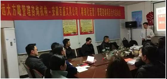 2019年4月,安徽百盛文具有限公司(以下簡稱“百盛文具”)攜手遠大方略遠大方略管理咨詢公司啟動《精細化運營》管理改善項目。遠大方略項目總監(jiān)程波老師,項目組長唐光輝老師入駐百盛文具。通過與百盛文具公司核心團隊的探討,本次咨詢項目主要圍繞會議模式變革、提升庫存管理水平、組織建設(shè)、交付系統(tǒng)、效率提升等內(nèi)容展開,達到促進團隊成長、降本增效的管理變革目的。