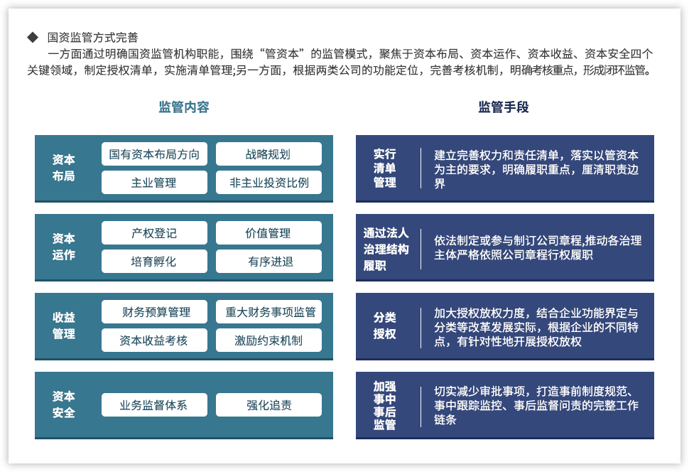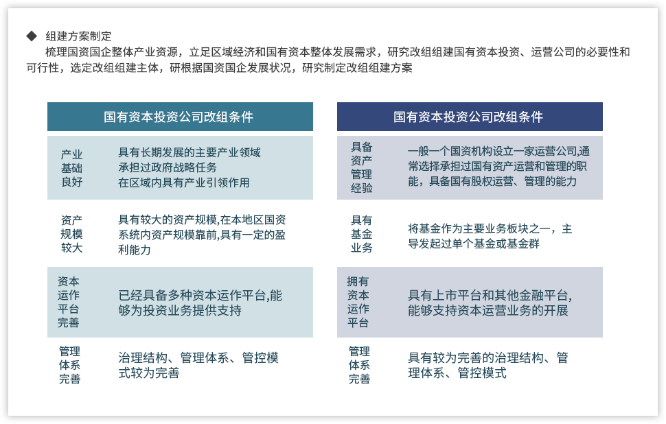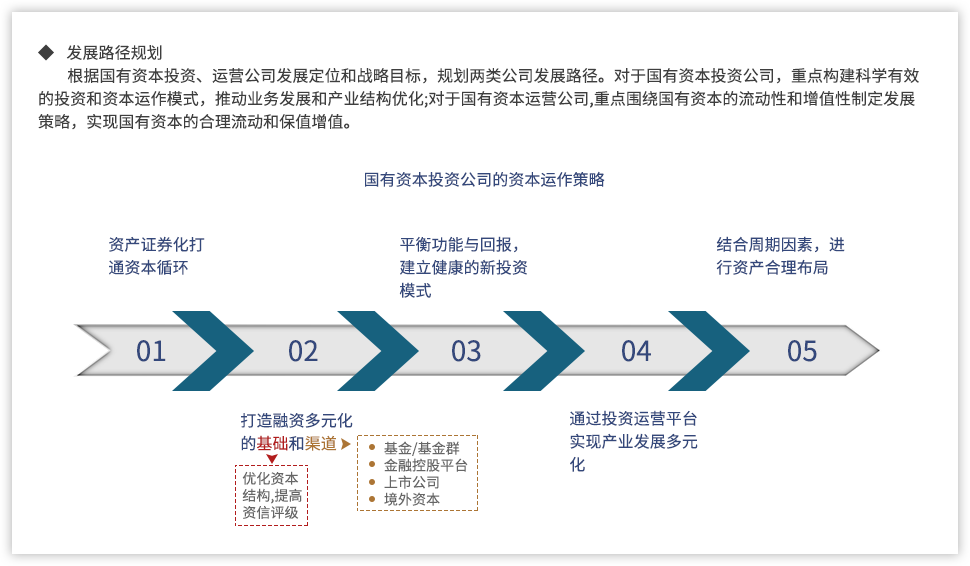 為了更好推動國有資本投資、運營公司,提升國有資本運營能力,遠大方略認為,需要進一步明確國有資本投資、運營公司的定位,基于國有資本整體視角進行產業和業務的戰略定位,并通過強化企業內部管理,提升國有資本的運營效率。
