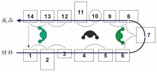 生產(chǎn)同步化的理想狀態(tài)是工件在各工序間一個(gè)一個(gè)生產(chǎn)、一個(gè)一個(gè)往下一道工序傳遞,直至總裝線,即單件生產(chǎn)、單件流動(dòng)。工廠中有各種各樣的工序,為了實(shí)現(xiàn)全部生產(chǎn)過(guò)程的同步化,需要根據(jù)這些工序的特點(diǎn),使批量盡量縮小,朝理想的“1個(gè)流”靠攏。但這樣一來(lái),作業(yè)切換就會(huì)變得很頻繁。