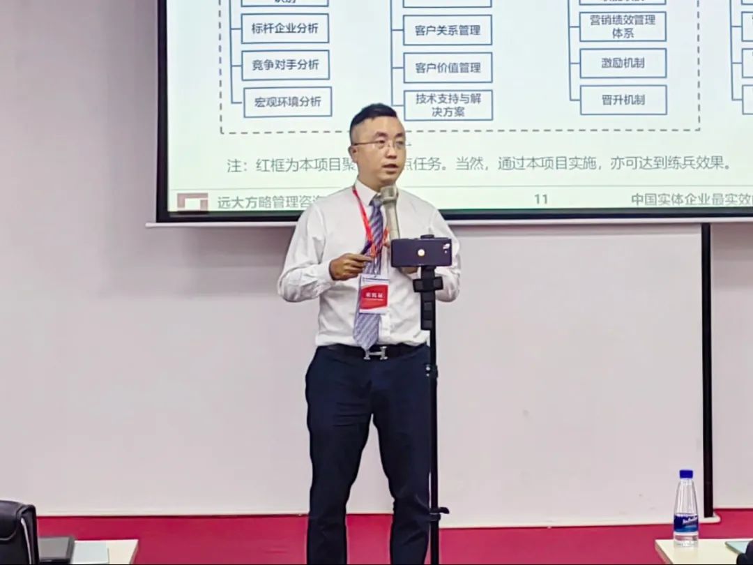老師還結合市場競爭環境和公司發展現狀,詳細講解了項目計劃。此次項目將會重點圍繞打造持續為客戶創造價值并與對手形成競爭差異的營銷組織主題,進一步明確公司的營銷戰略,梳理營銷流程,建立符合企業運營的營銷機制,助力公司在市場競爭中占據優勢。