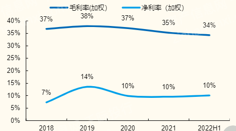 儀器儀表行業整體承壓,高端廠商有望突破。2022H1、2022Q2儀器儀表行業歸母凈利潤同比增長分別為-7.7%,-6%。從成長性來看,電子測量儀器行業市場規模接近千億,行業多數份額被海外壟斷,海內外企業規模差距明顯,但是 21 年以來國內企業不斷突破上游技術瓶頸,上游芯片自供率不斷提升,22H1 代表企業普源精電搭載自研芯片的數字示波器銷售比例超過 69%,不斷降低海外芯片的依程度。憑借國內企業持續的研發投入和上游芯片自供率提升,國產電子測量儀器產品檔次不斷進階,多個產品達到國際高端水平,疊加國產產品的價格優勢,國內企業收入正處于高速增長階段。