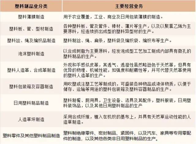 塑料制品行業(yè)分類情況