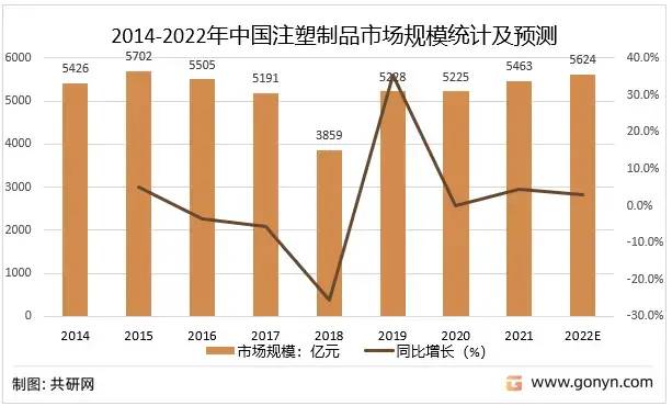 2014-2022年中國(guó)注塑制品市場(chǎng)規(guī)模統(tǒng)計(jì)及預(yù)測(cè)