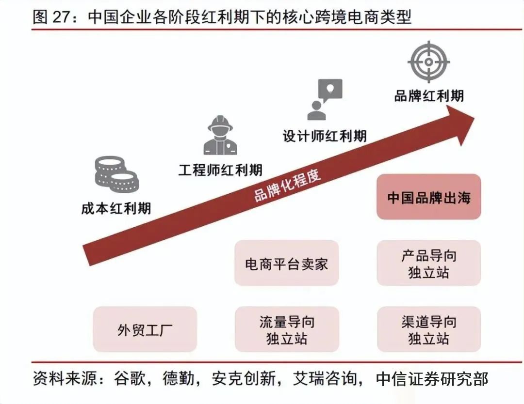 早期,憑借國內的勞動力優勢,中國制造的高性價比產品快速打開海外市場,但也帶 來了消費者價格敏感、用戶粘性及心智較差等問題。經過二十余年發展,隨著我國跨境電商模式的逐漸成熟、產業鏈布局的逐漸深入,以及行業競爭的日益激烈,國內跨境電商賣家正在實現從中國制造到中國品牌的升級,以提升消費者心智并強化議價能力。