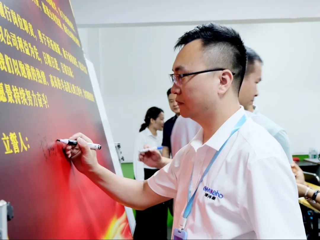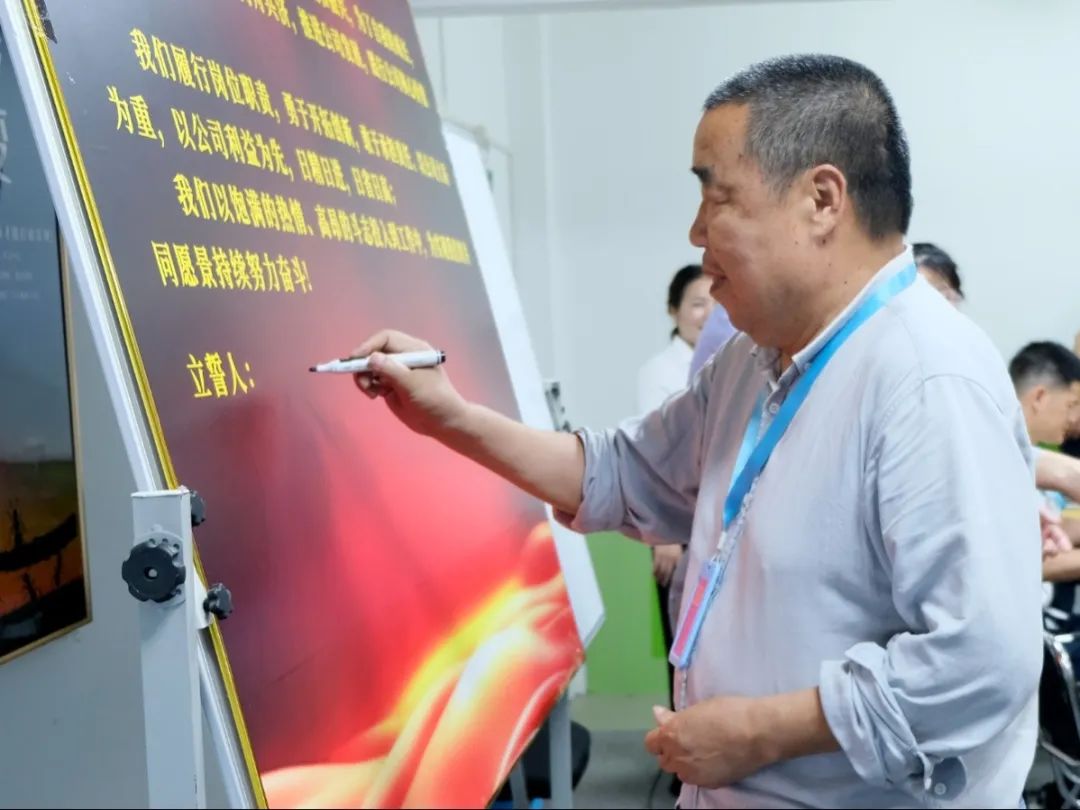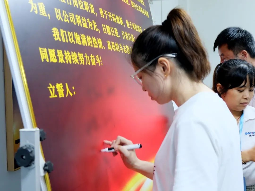 會上,萬總為項目老師頒發了授權書和聘書,帶領項目關鍵人員在誓詞上簽字并集體宣誓,鼓勵大家和公司共同成長進步。