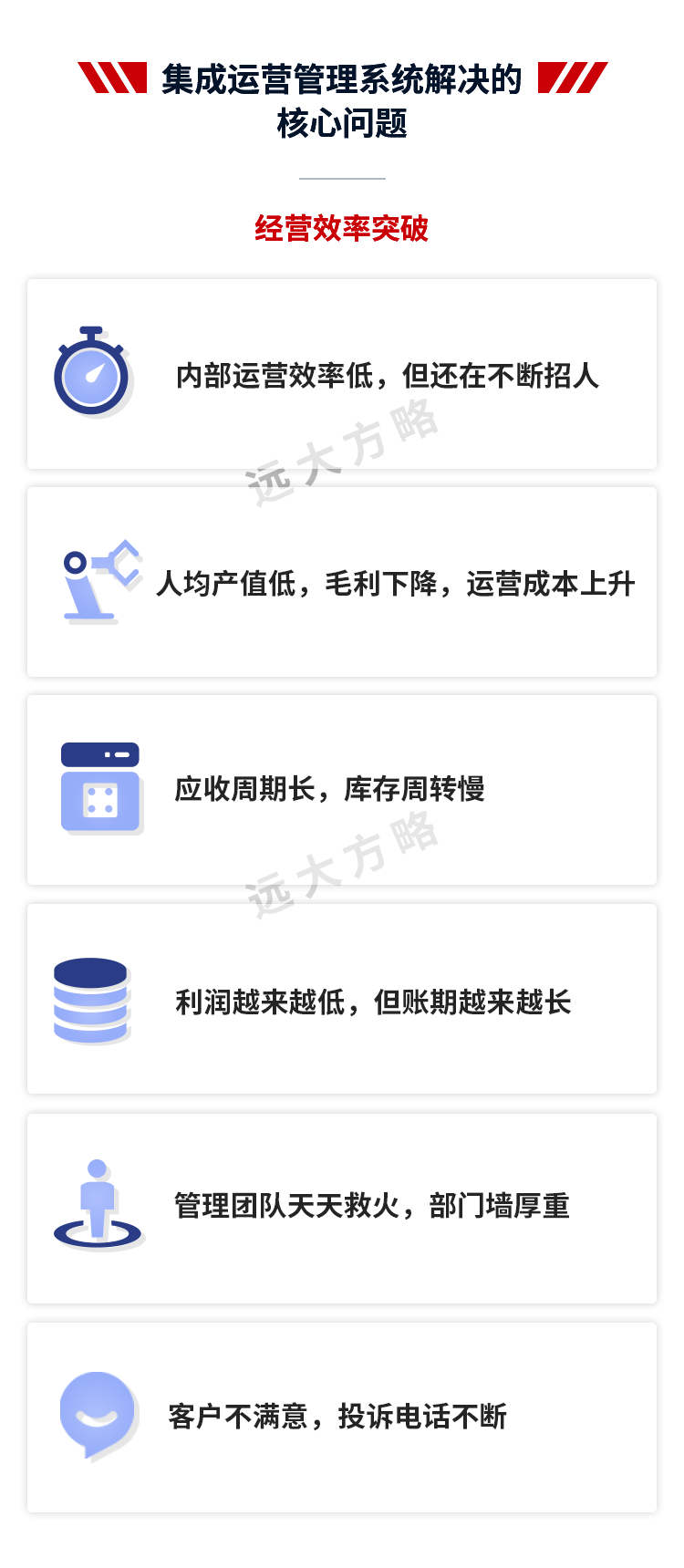 遠大方略始終遵循不了解不理解企業的前提下絕不輕易下結論,正式制定改善方案前必須深入到業務一線了解和理解企業的運營情況。